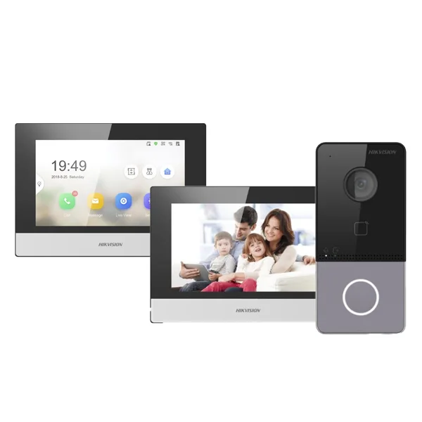 The Hikvision DS-KH6320-WTE1 is a modern indoor video-intercom station designed for reliable, user-friendly access control and communication. It features a 7-inch full-colour capacitive TFT touchscreen with a resolution of 1024×600, giving you a crisp and clear interface.